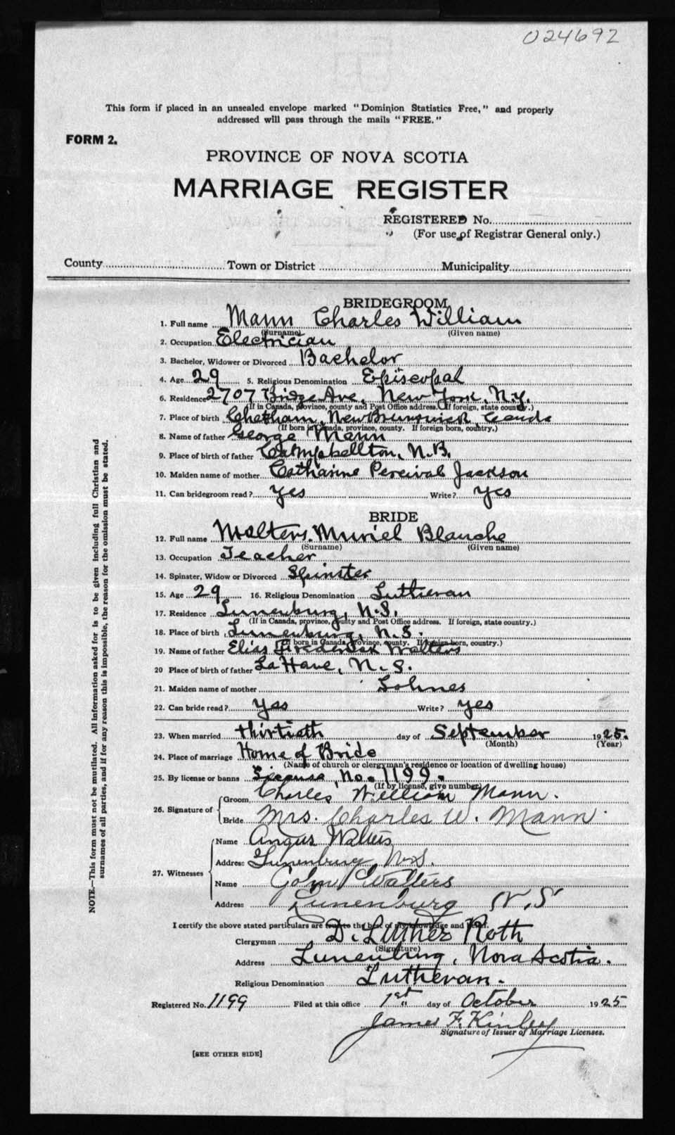 Registration: Year: 1925 number: 24692