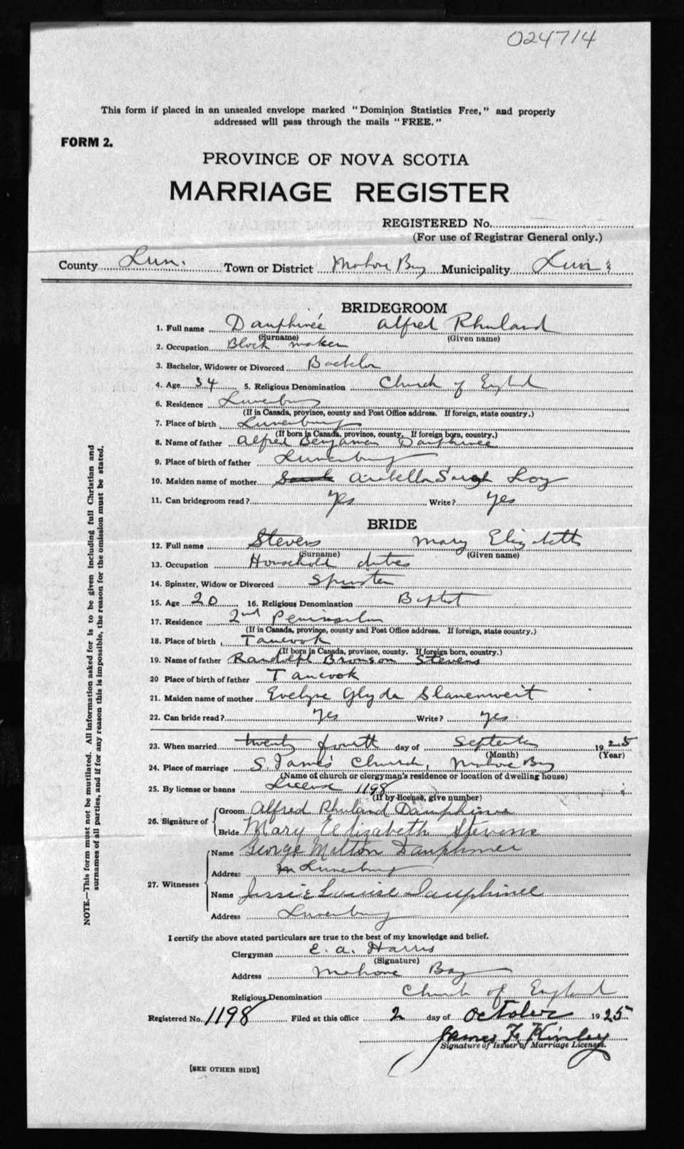 Registration: Year: 1925 number: 24714