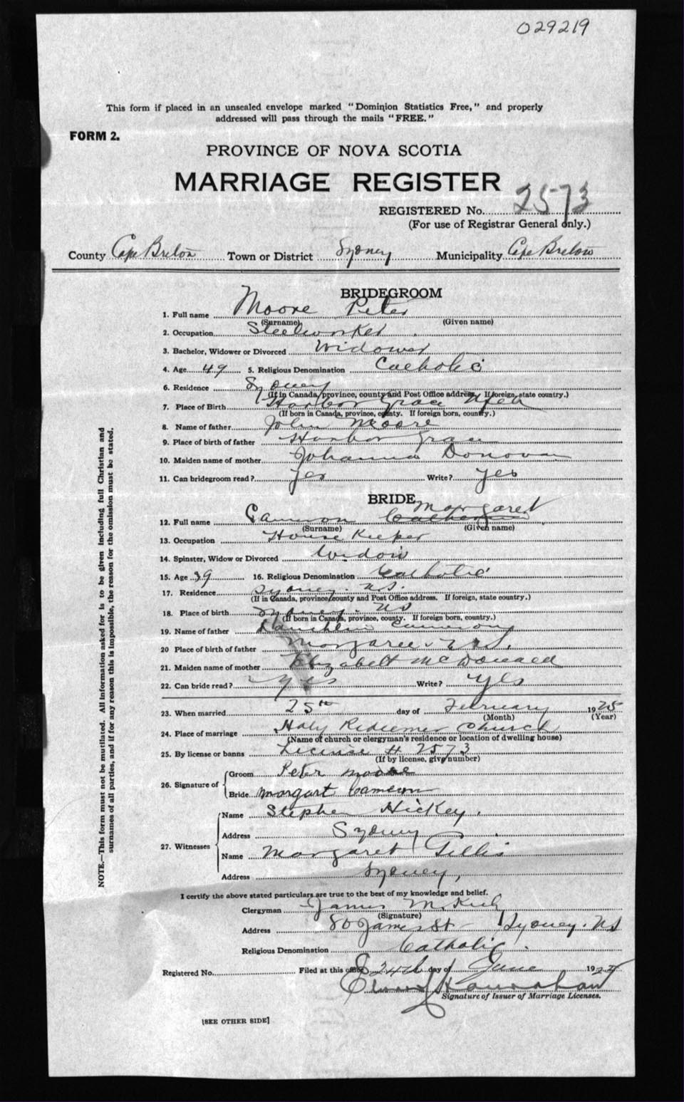 Registration: Year: 1925 number: 29219