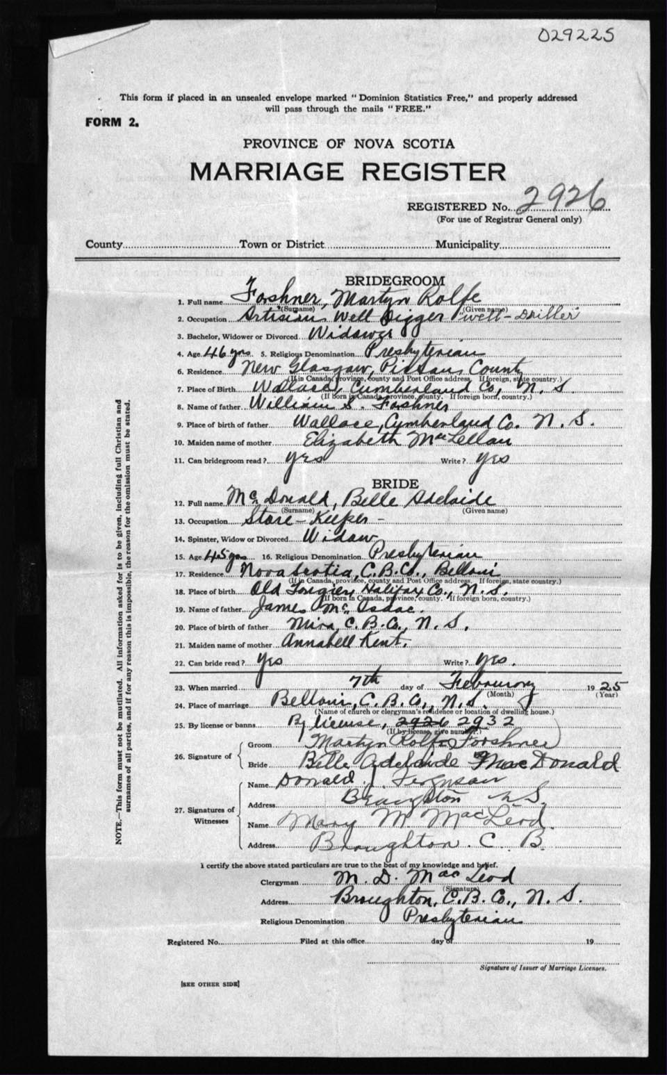 Registration: Year: 1925 number: 29225