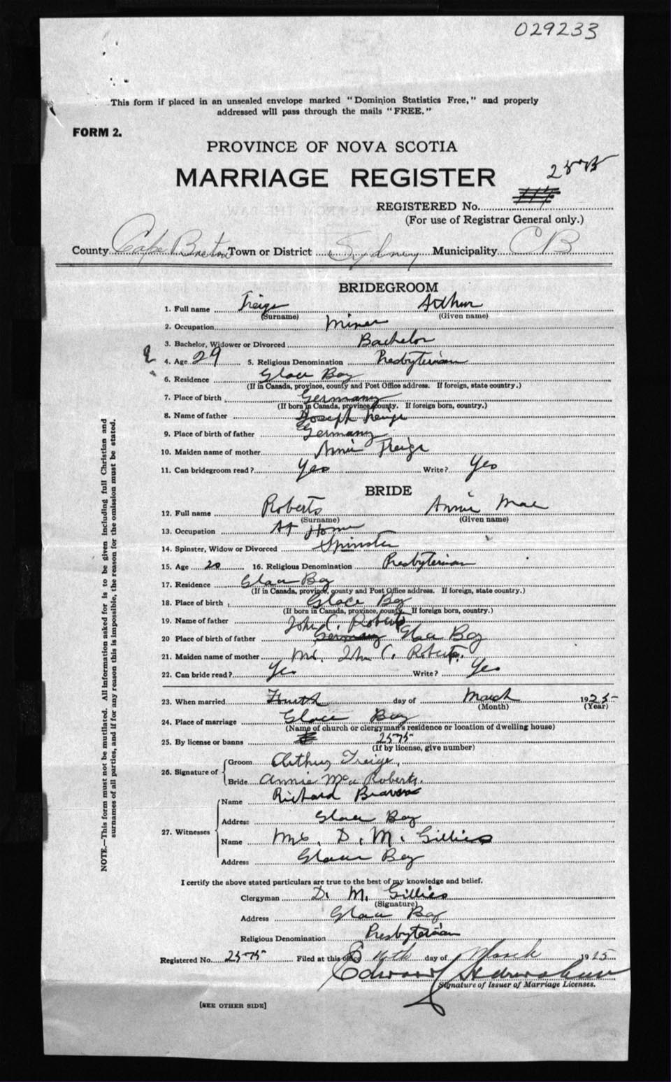 Registration: Year: 1925 number: 29233