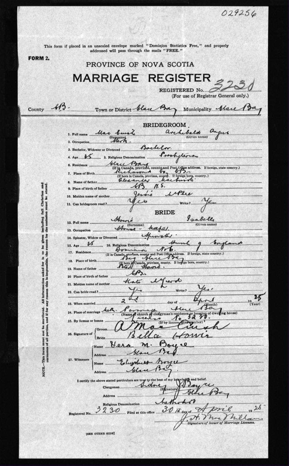 Registration: Year: 1925 number: 29256