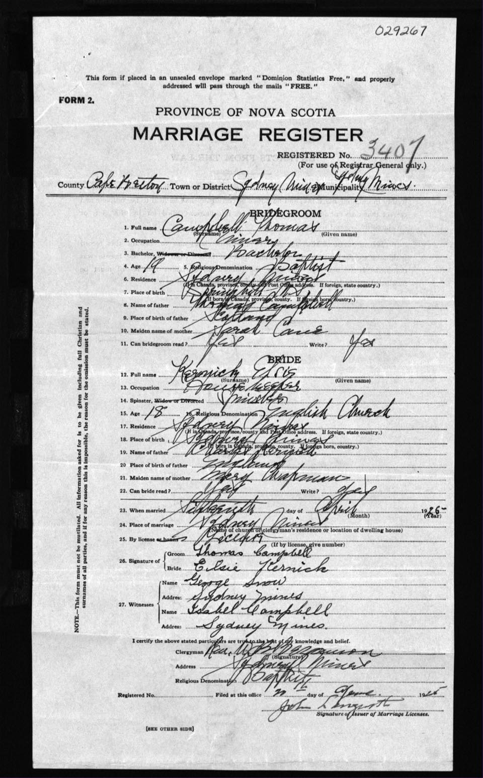 Registration: Year: 1925 number: 29267