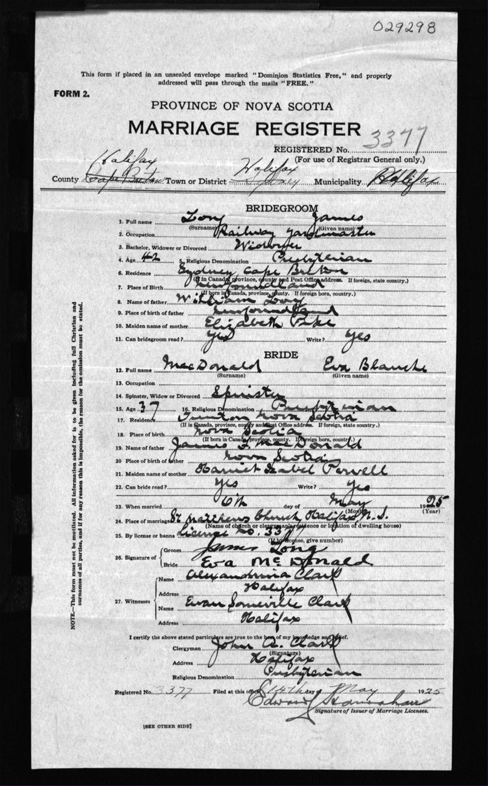 Registration: Year: 1925 number: 29298