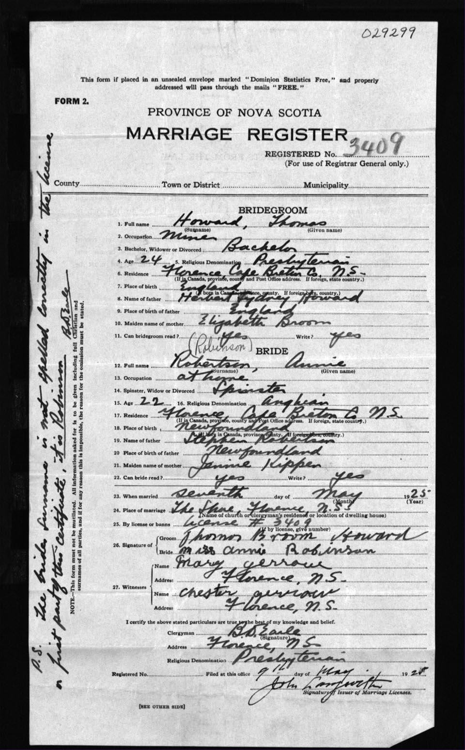 Registration: Year: 1925 number: 29299
