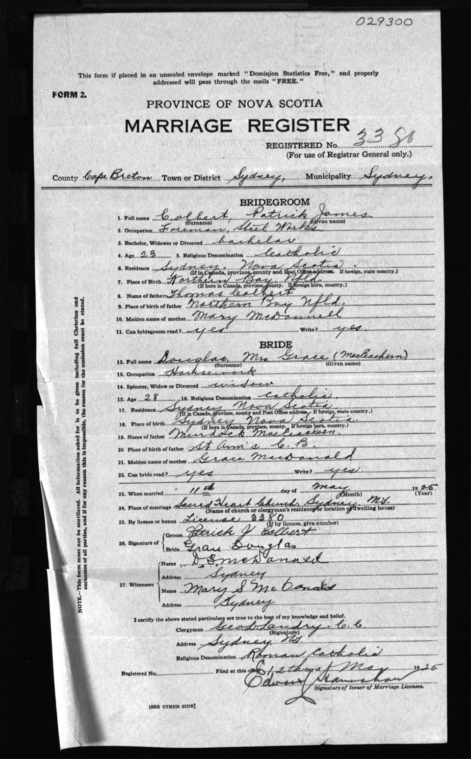 Registration: Year: 1925 number: 29300