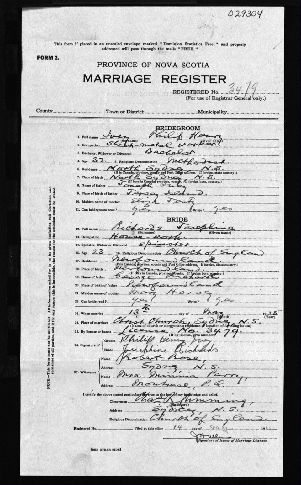 Registration: Year: 1925 number: 29304