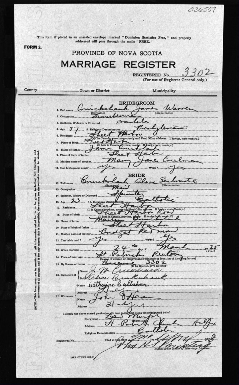 Registration: Year: 1925 number: 36507