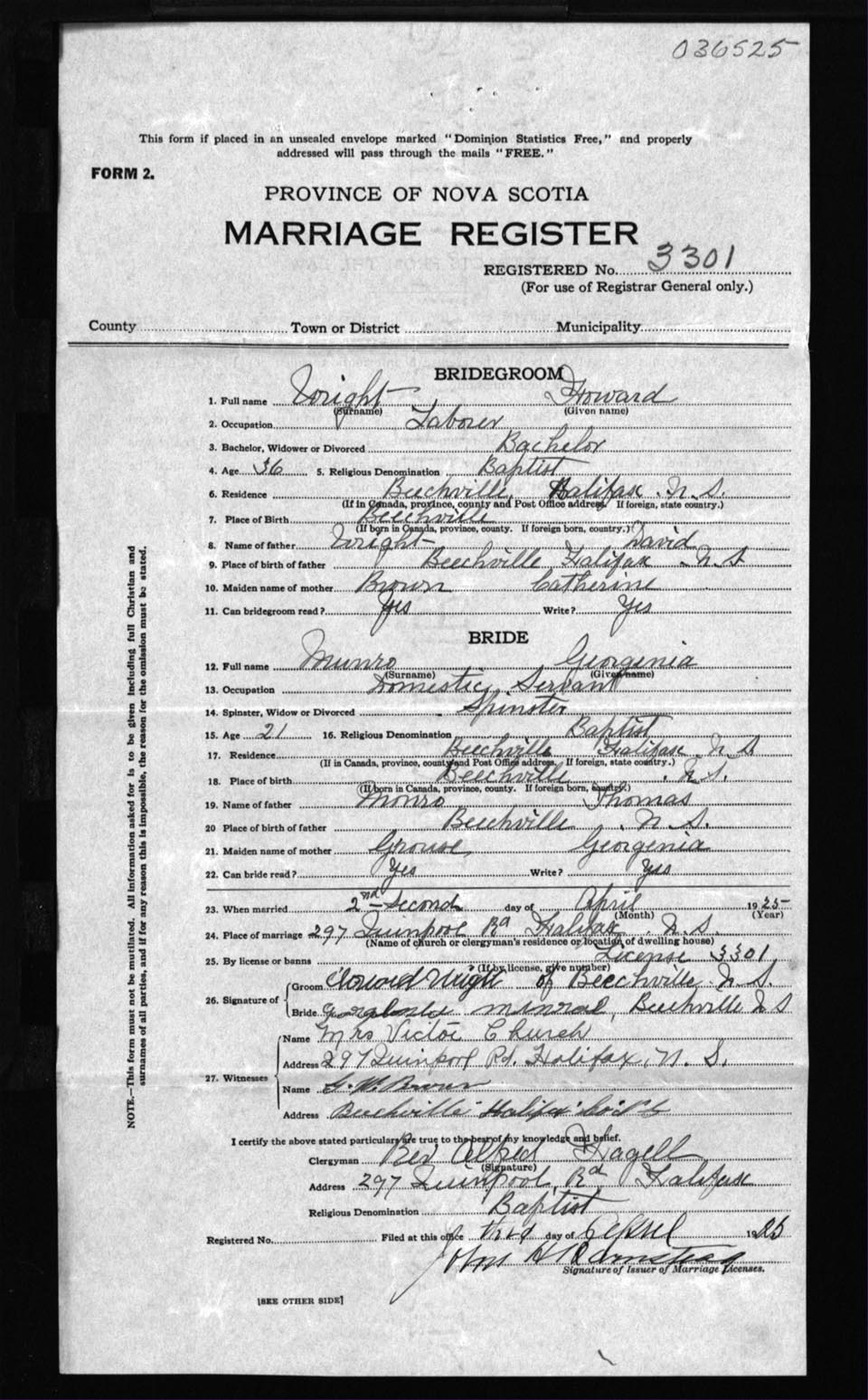 Registration: Year: 1925 number: 36525