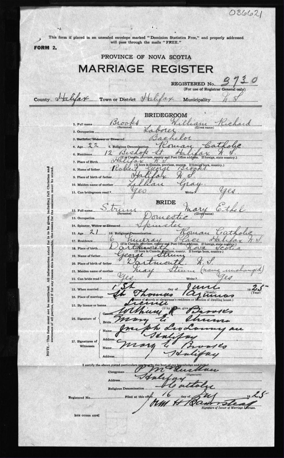 Registration: Year: 1925 number: 36621