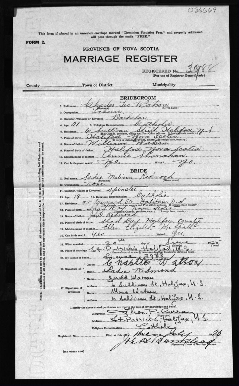 Registration: Year: 1925 number: 36669