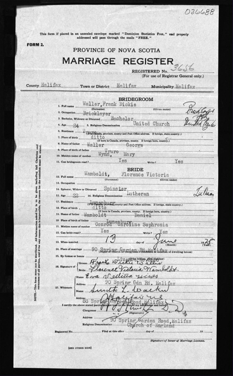 Registration: Year: 1925 number: 36688