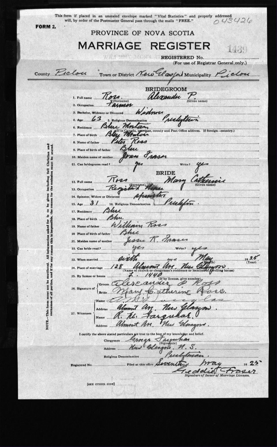 Registration: Year: 1925 number: 43426