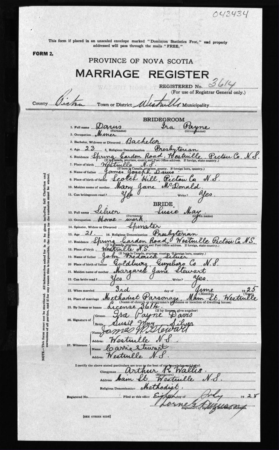 Registration: Year: 1925 number: 43434