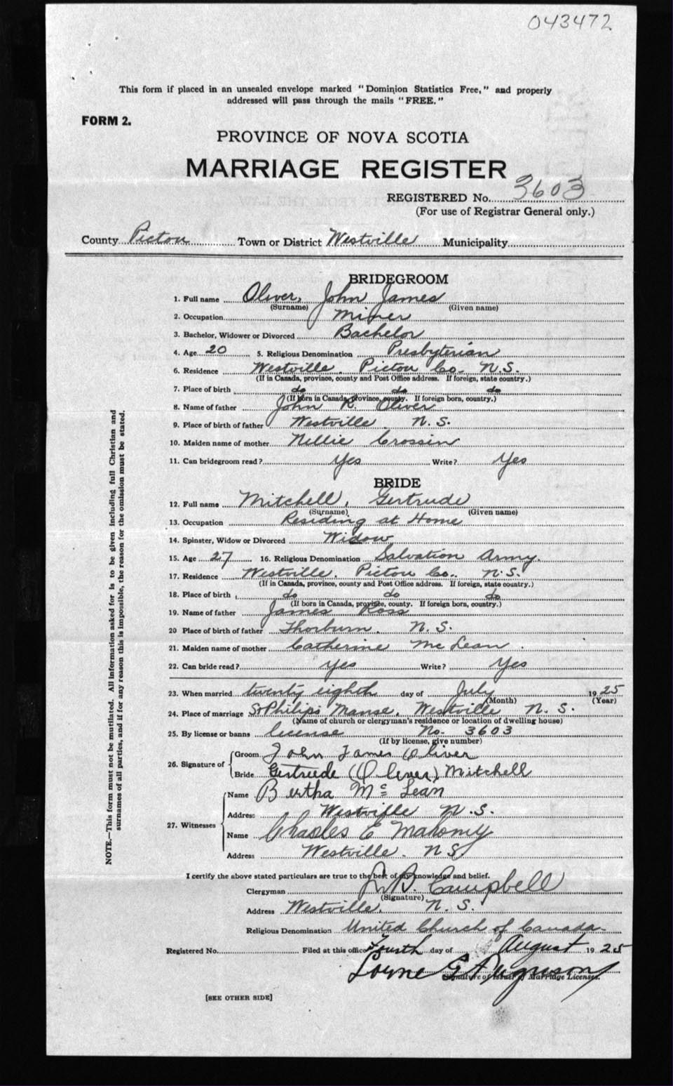 Registration: Year: 1925 number: 43472