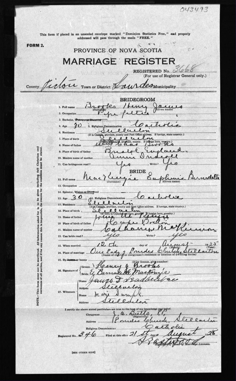 Registration: Year: 1925 number: 43493