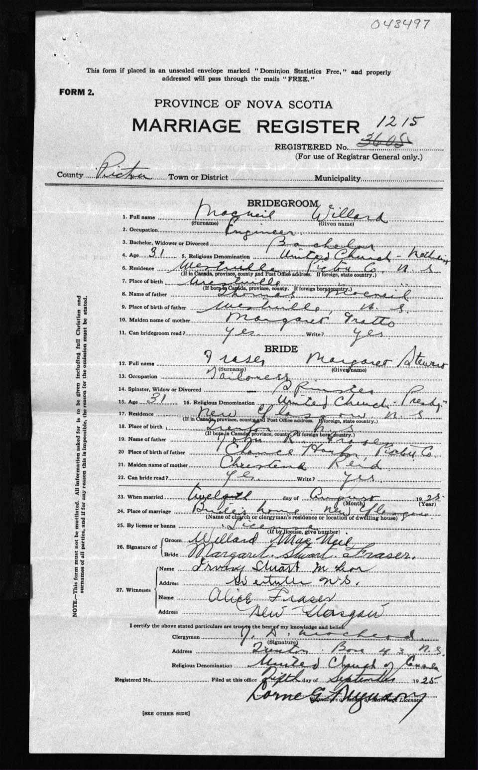 Registration: Year: 1925 number: 43497