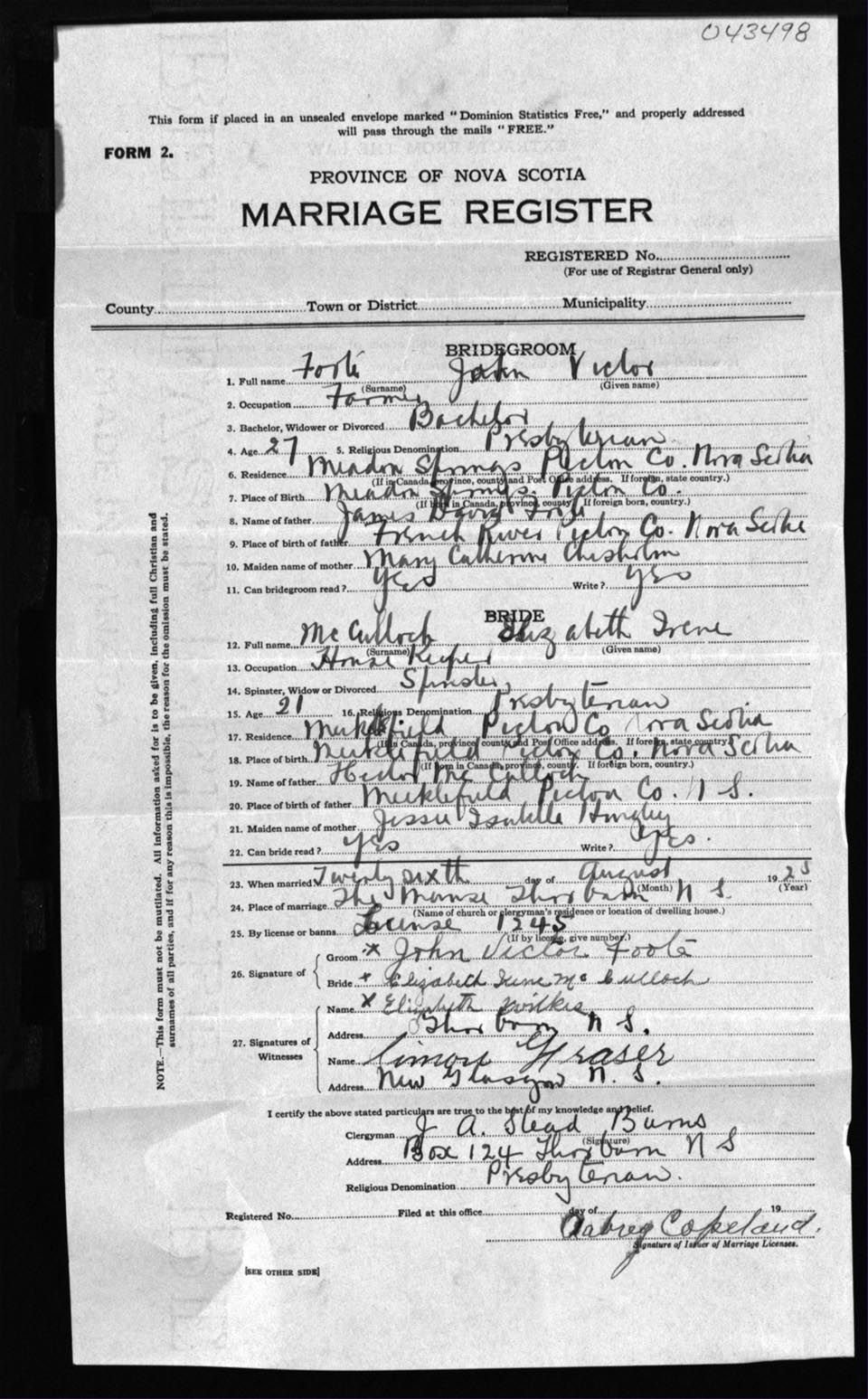 Registration: Year: 1925 number: 43498