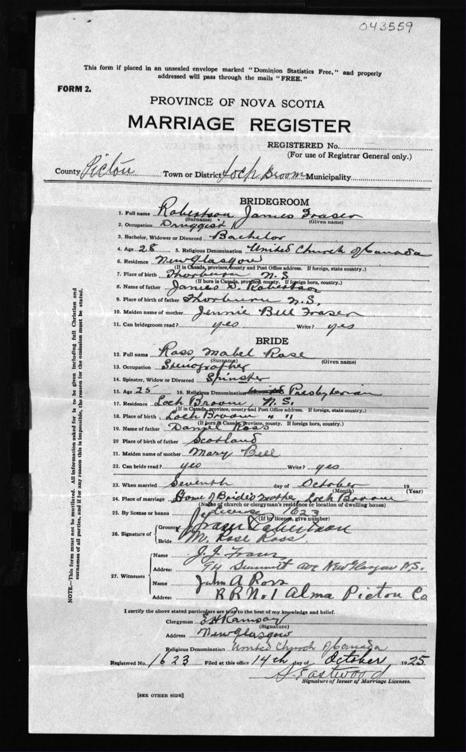 Registration: Year: 1925 number: 43559