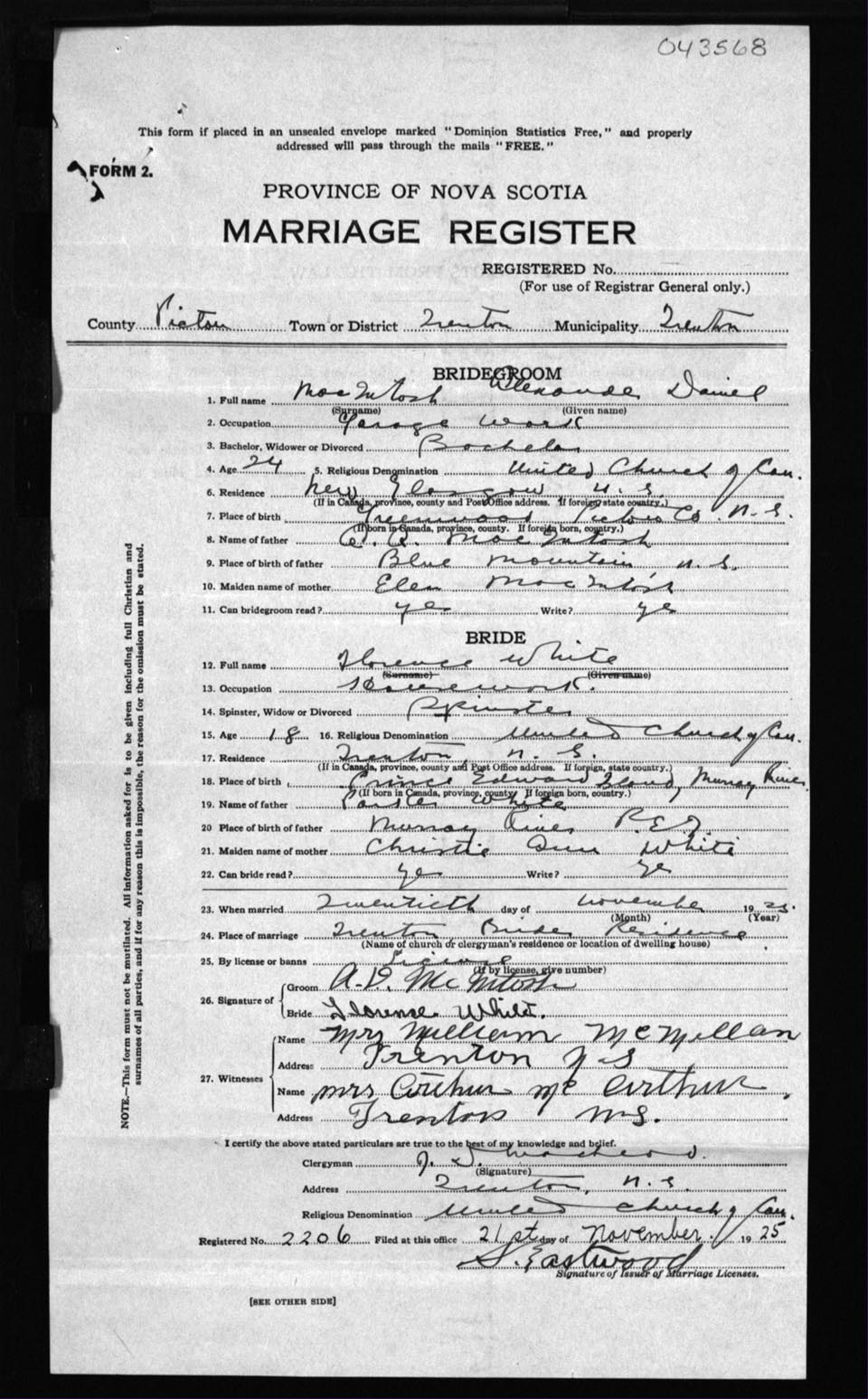 Registration: Year: 1925 number: 43568