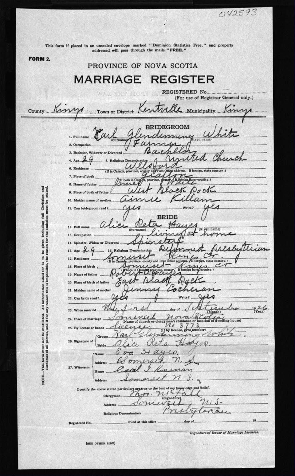 Registration: Year: 1926 number: 42593