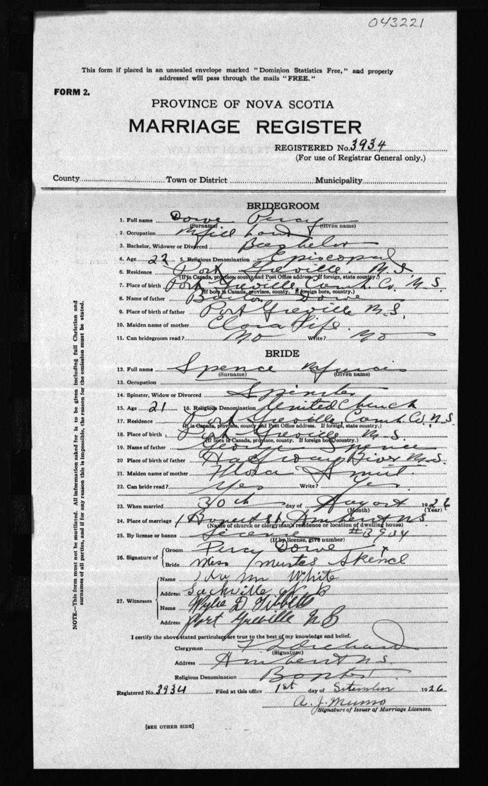 Registration: Year: 1926 number: 43221