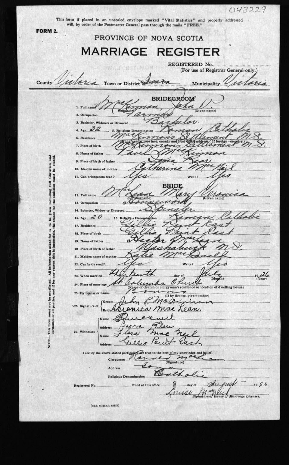Registration: Year: 1926 number: 43229
