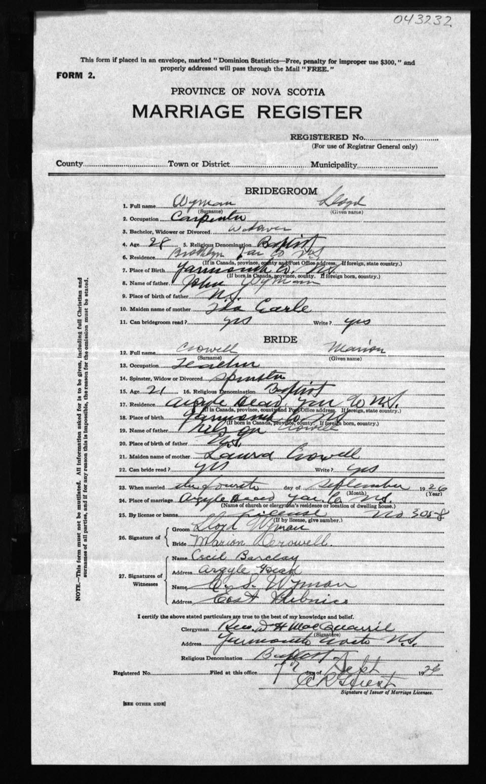 Registration: Year: 1926 number: 43232