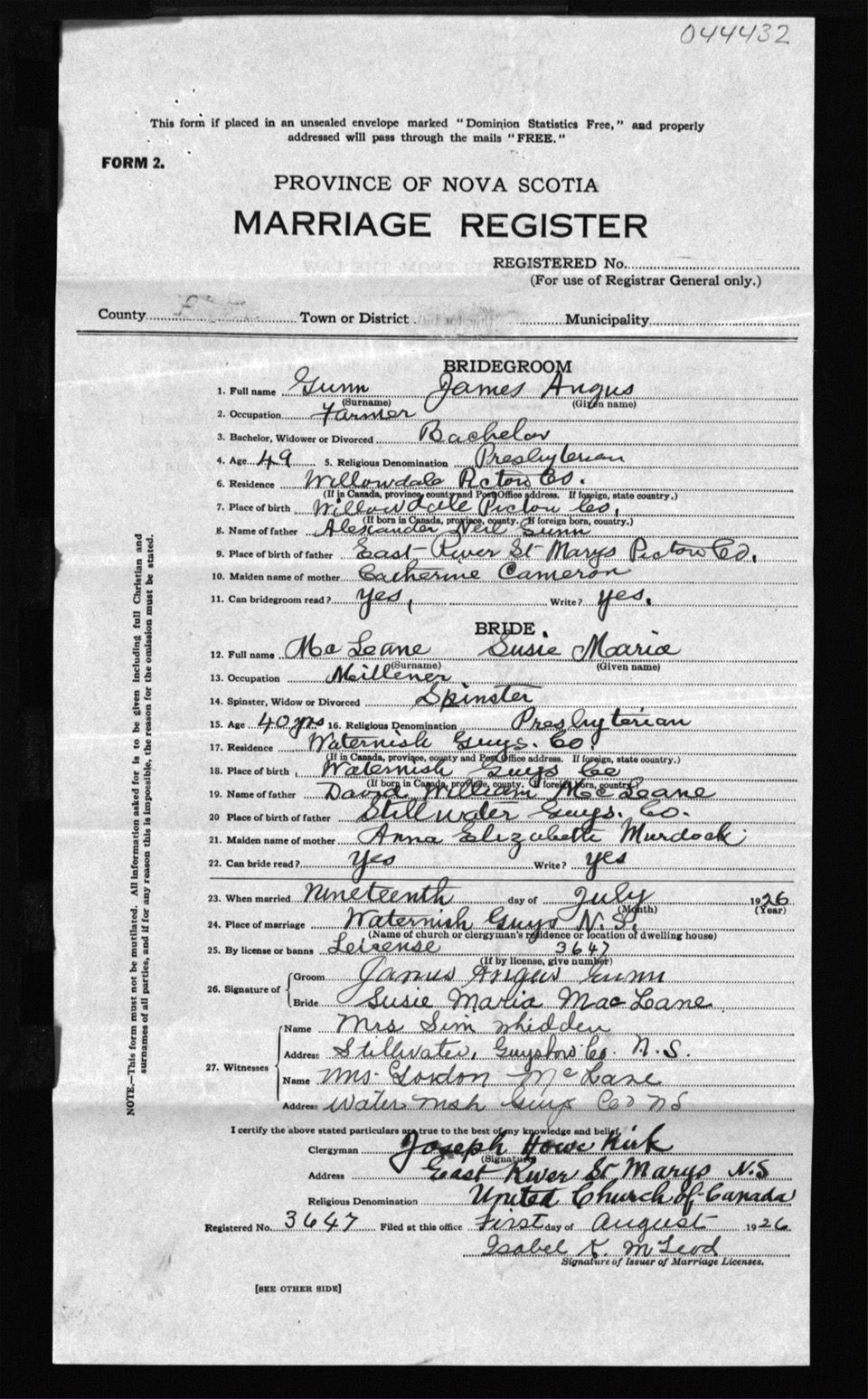 Registration: Year: 1926 number: 44432