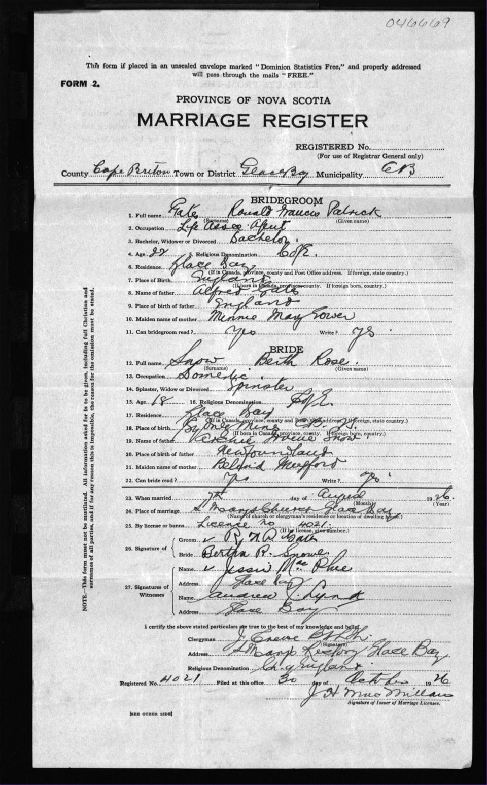 Registration: Year: 1926 number: 46669
