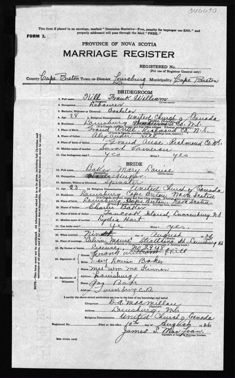 Registration: Year: 1926 number: 46670