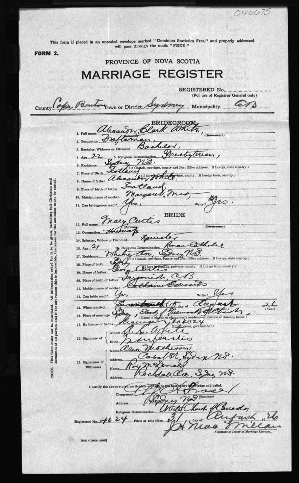 Registration: Year: 1926 number: 46675
