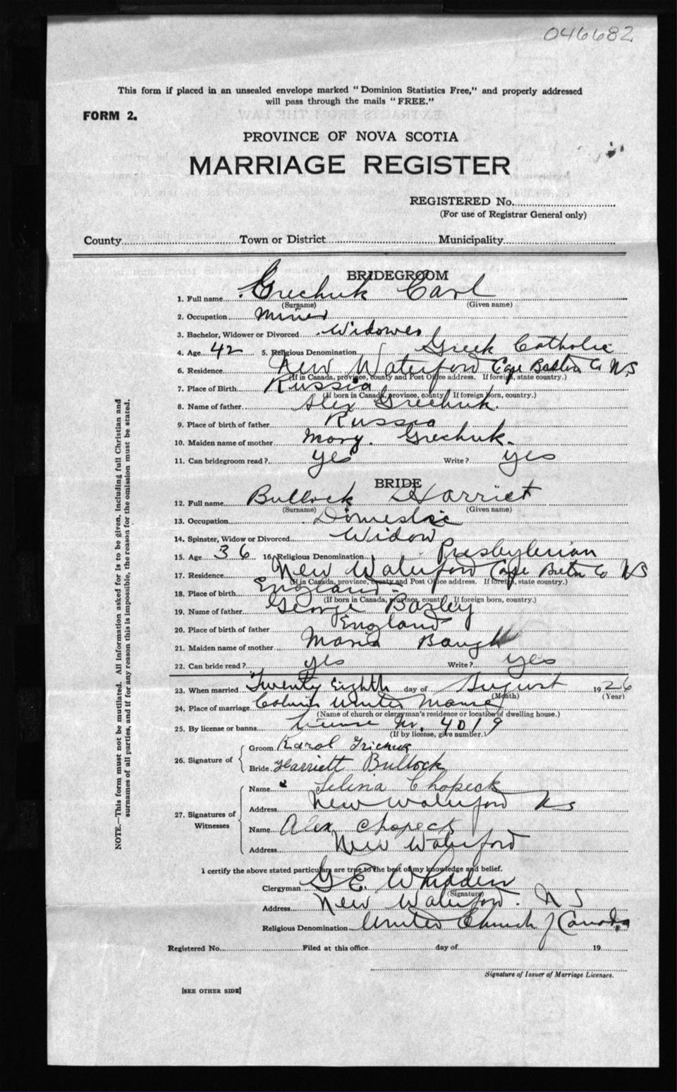 Registration: Year: 1926 number: 46682