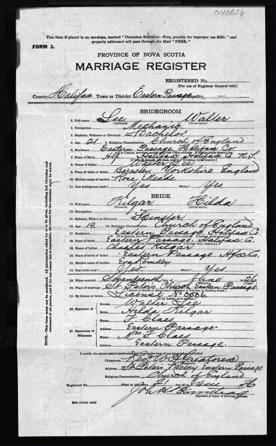 Registration: Year: 1926 number: 46826