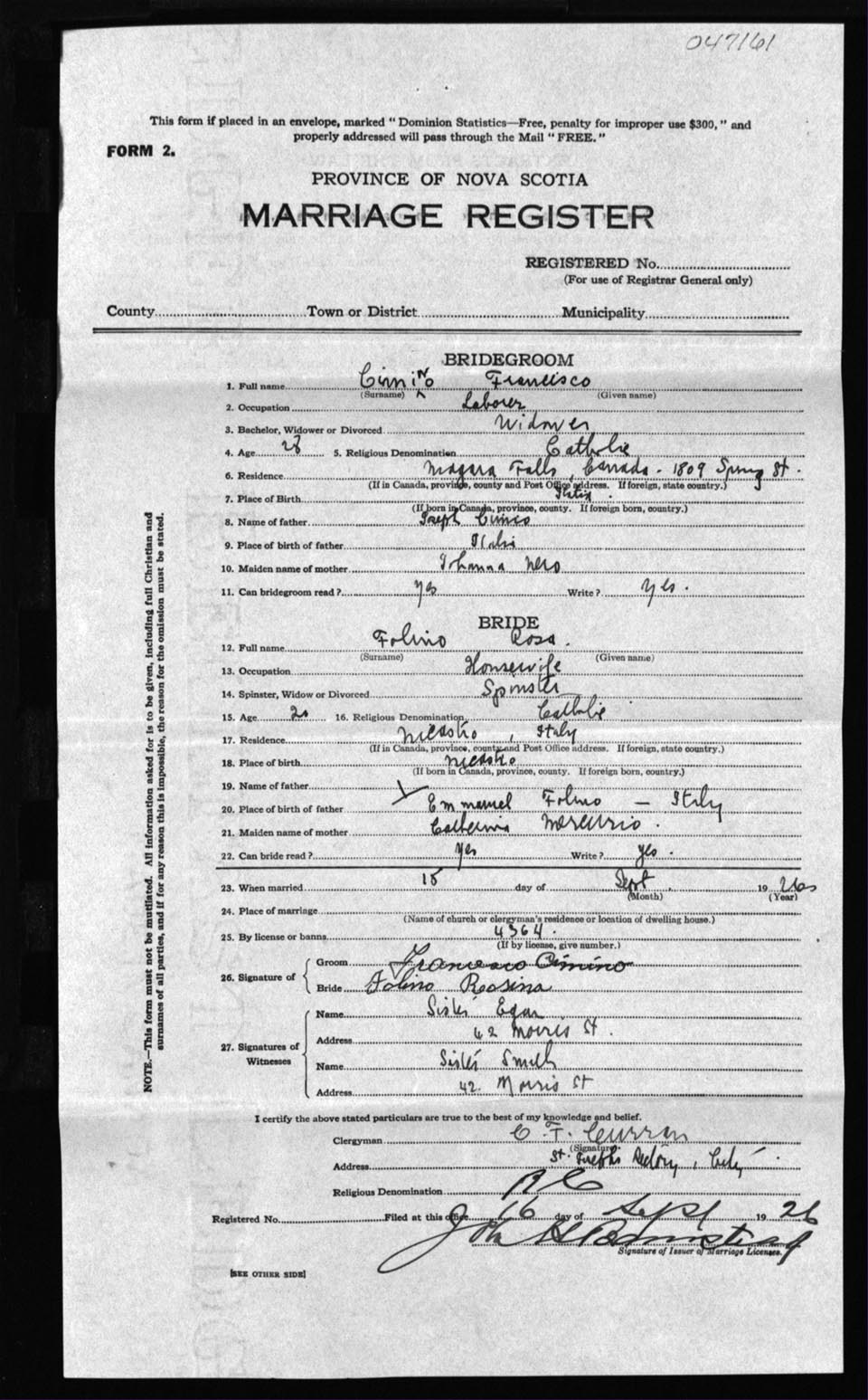 Registration: Year: 1926 number: 47161
