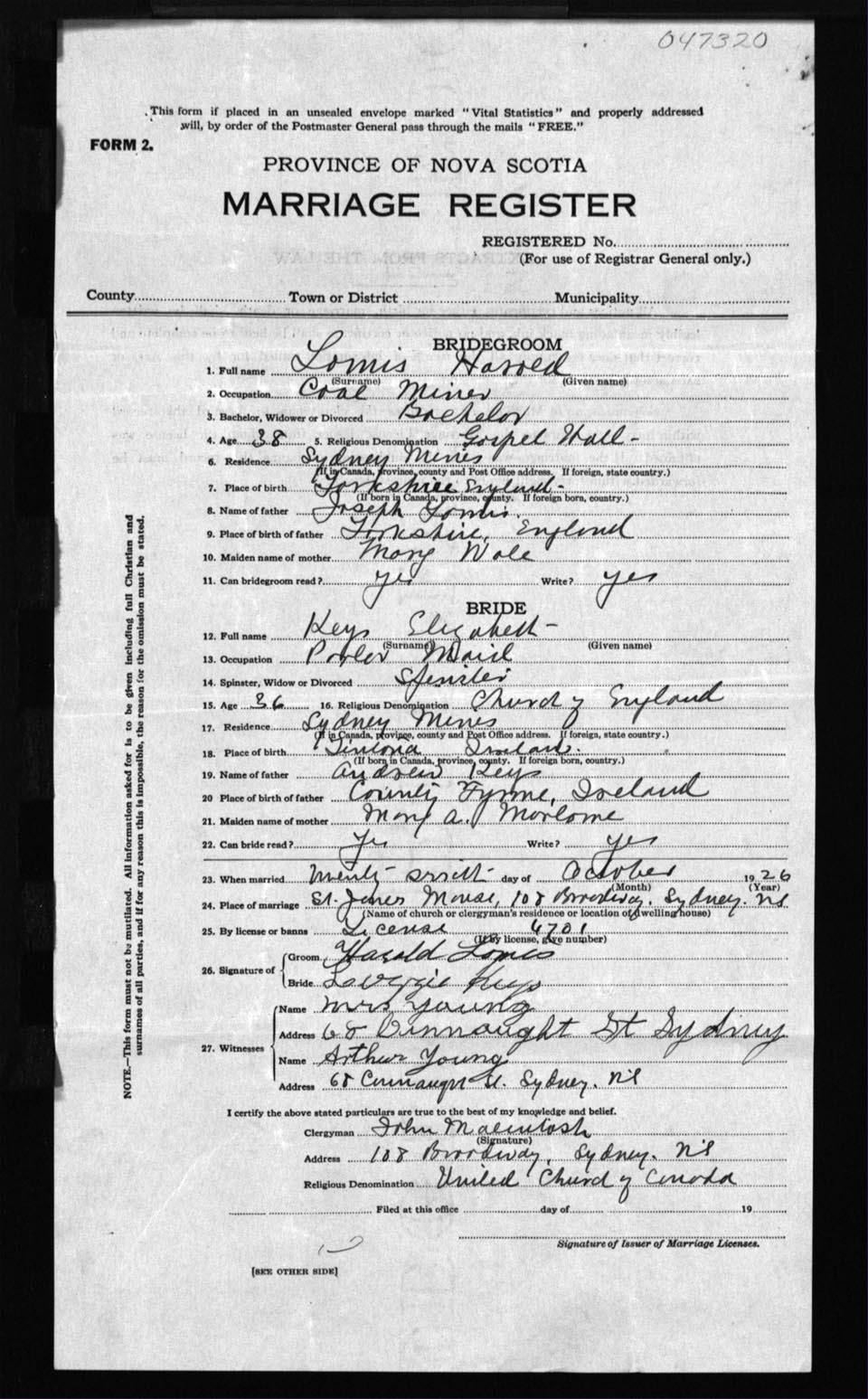 Registration: Year: 1926 number: 47320