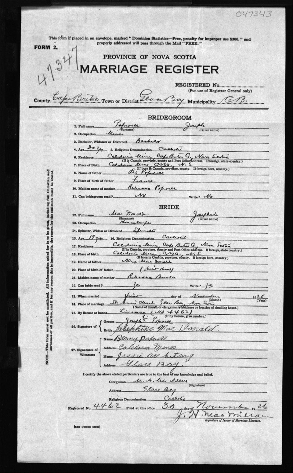 Registration: Year: 1926 number: 47343