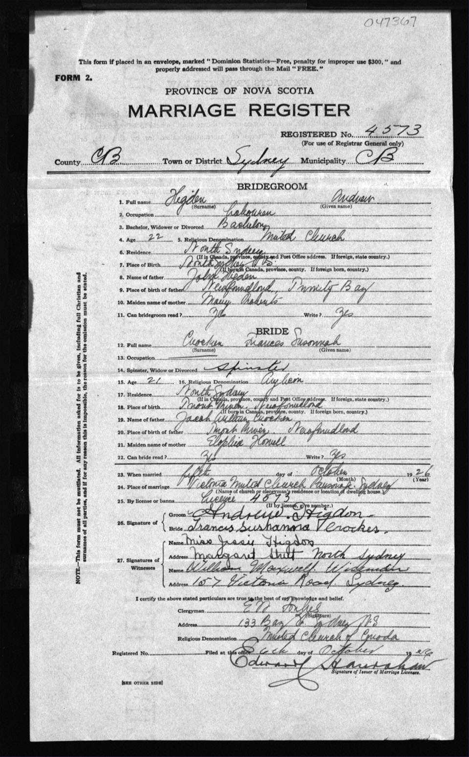 Registration: Year: 1926 number: 47367