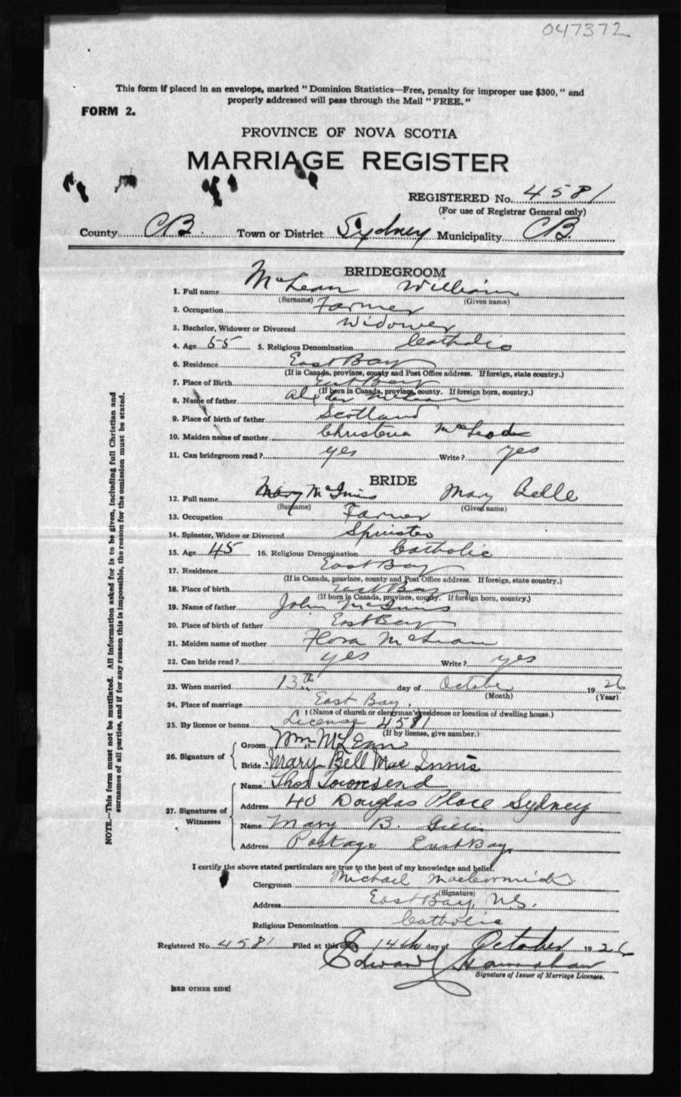 Registration: Year: 1926 number: 47372