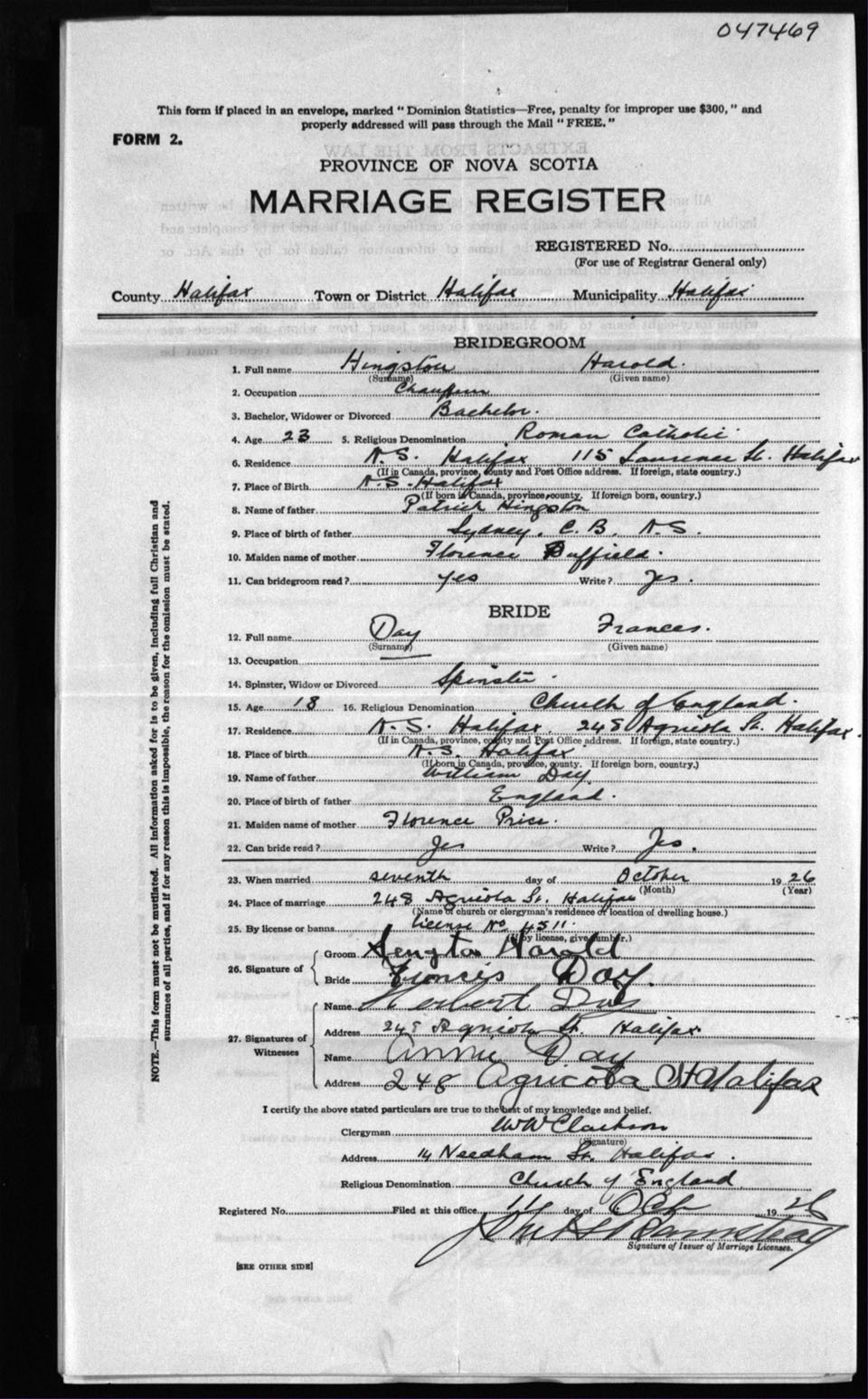 Registration: Year: 1926 number: 47469