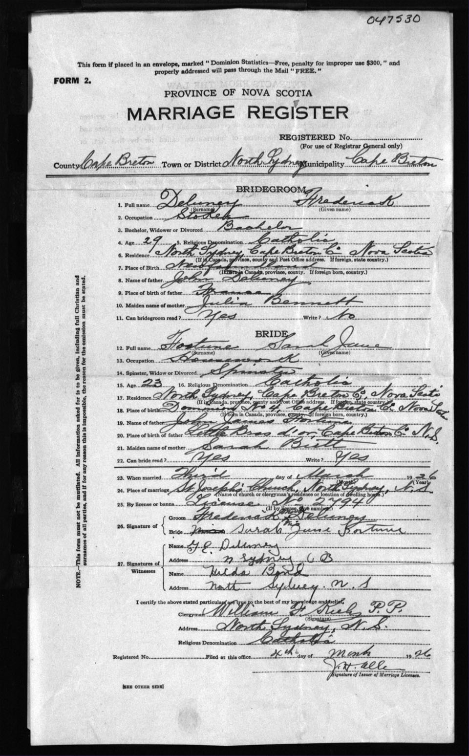 Registration: Year: 1926 number: 47530