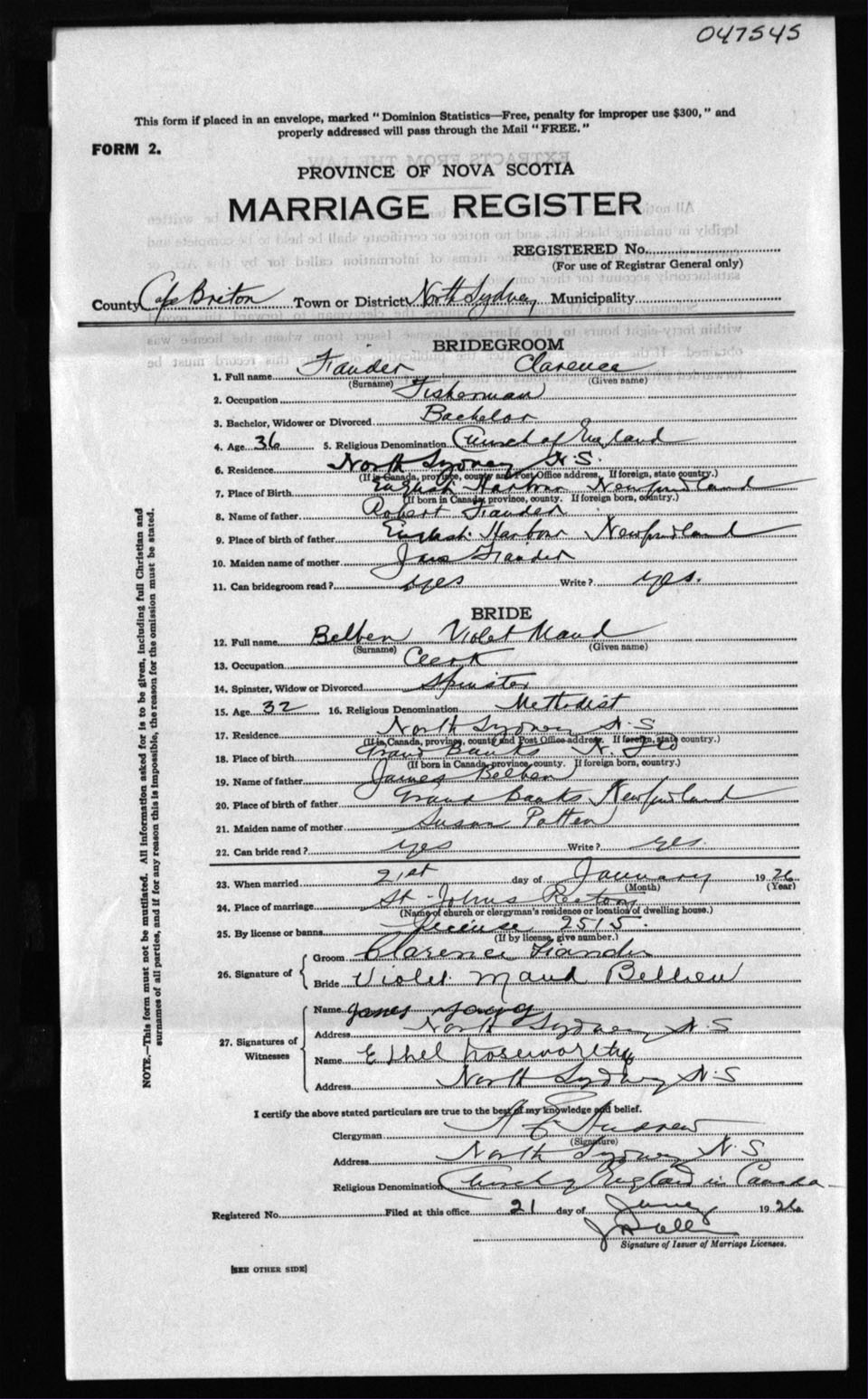 Registration: Year: 1926 number: 47545