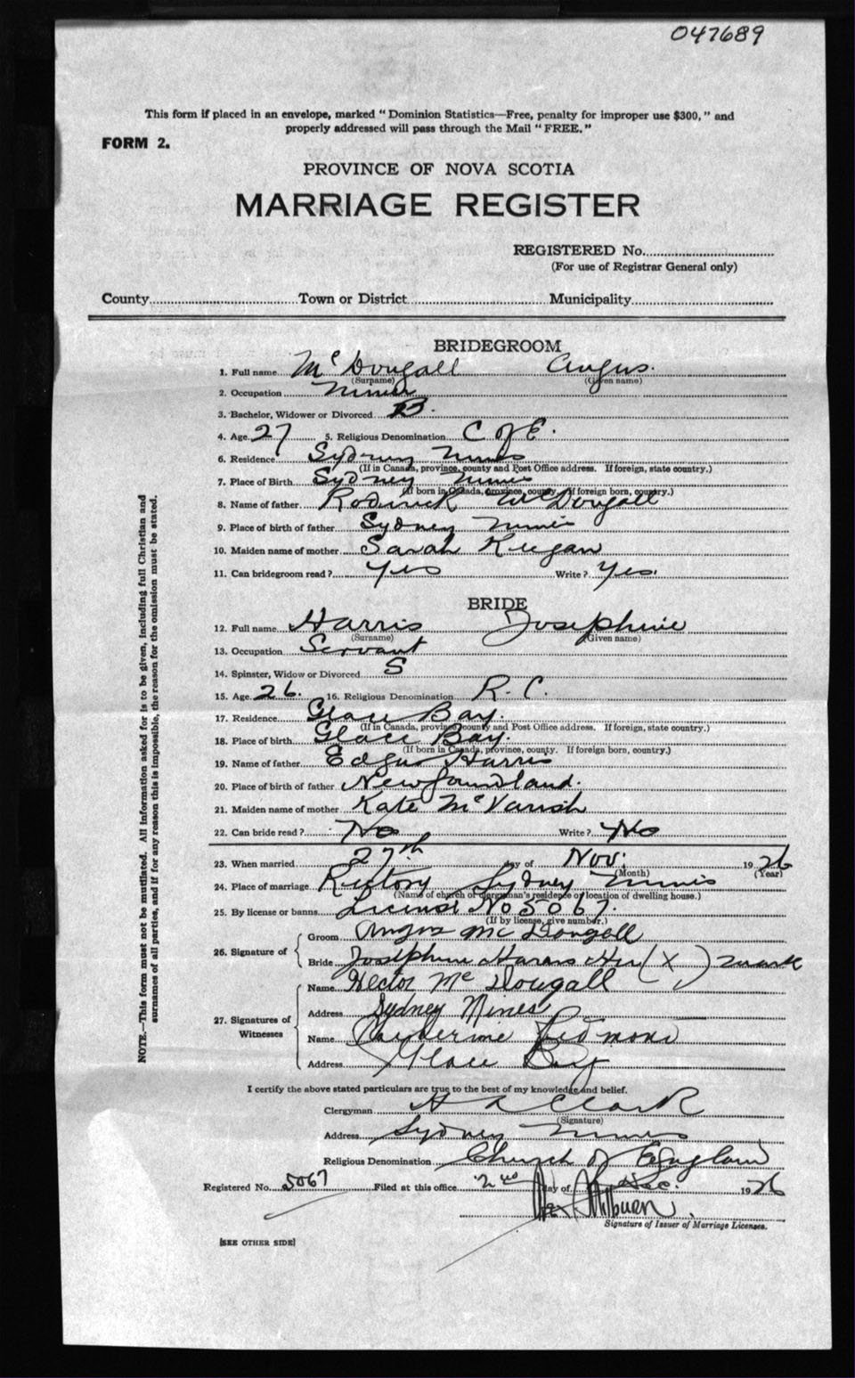 Registration: Year: 1926 number: 47689