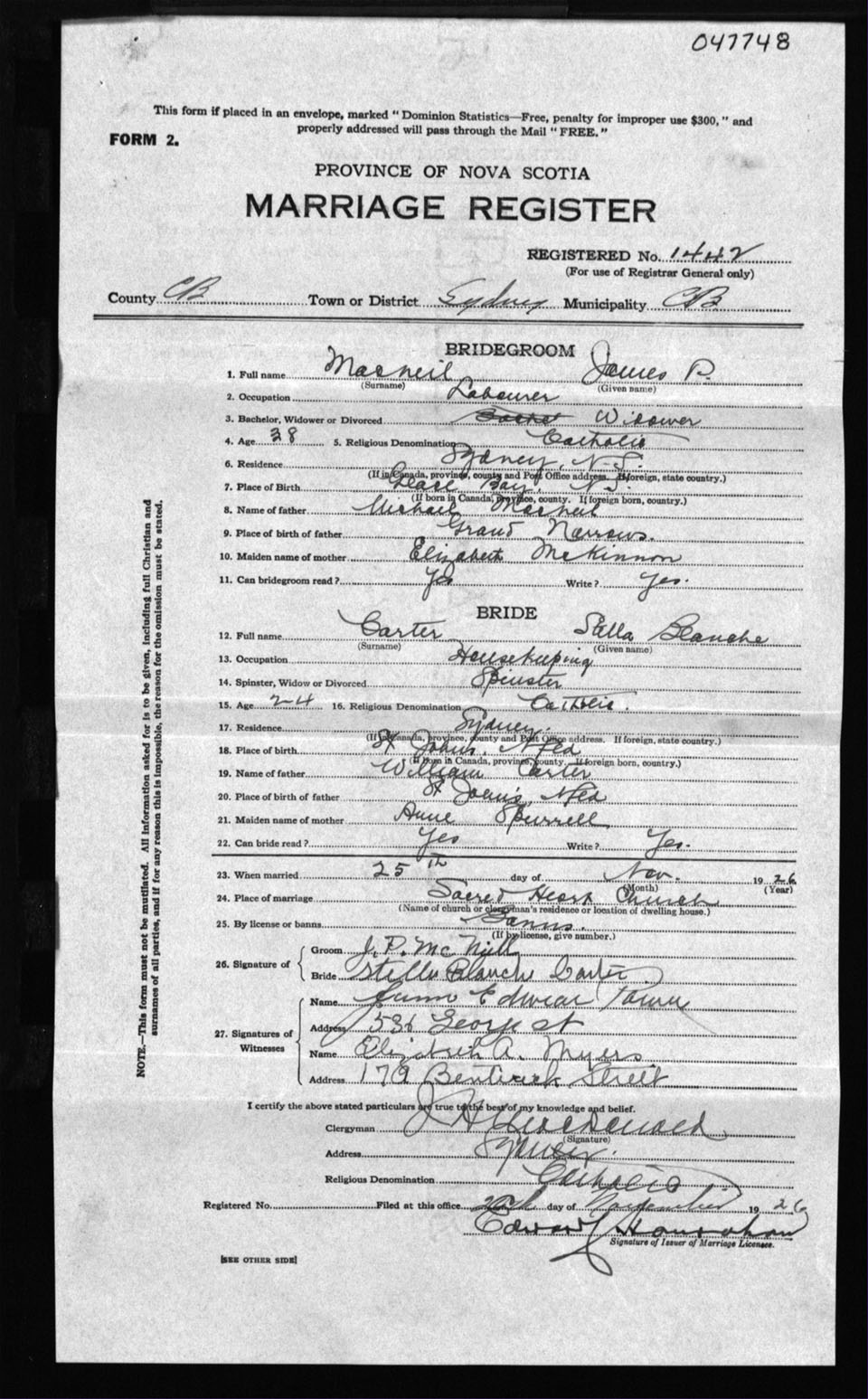 Registration: Year: 1926 number: 47748