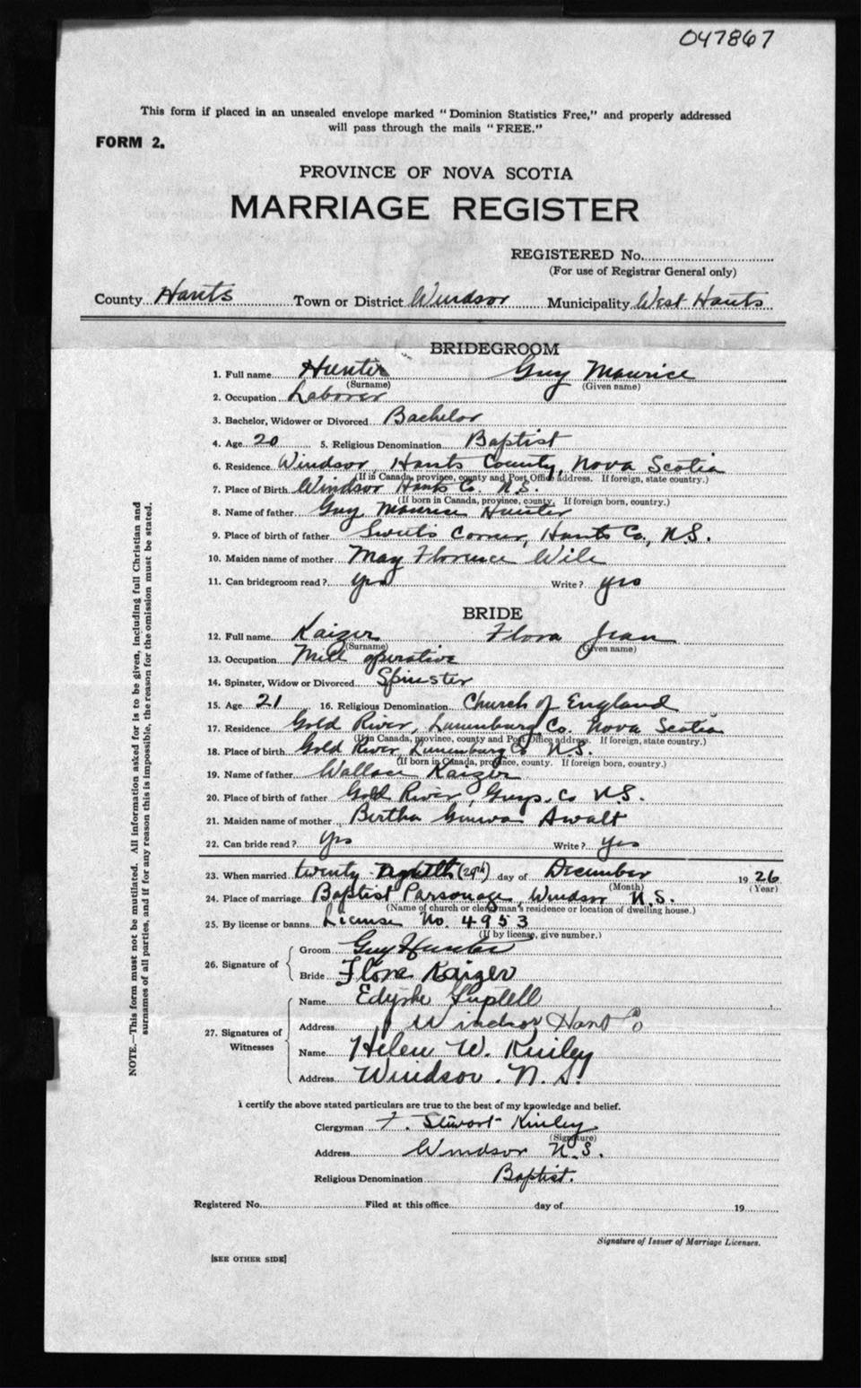 Registration: Year: 1926 number: 47867