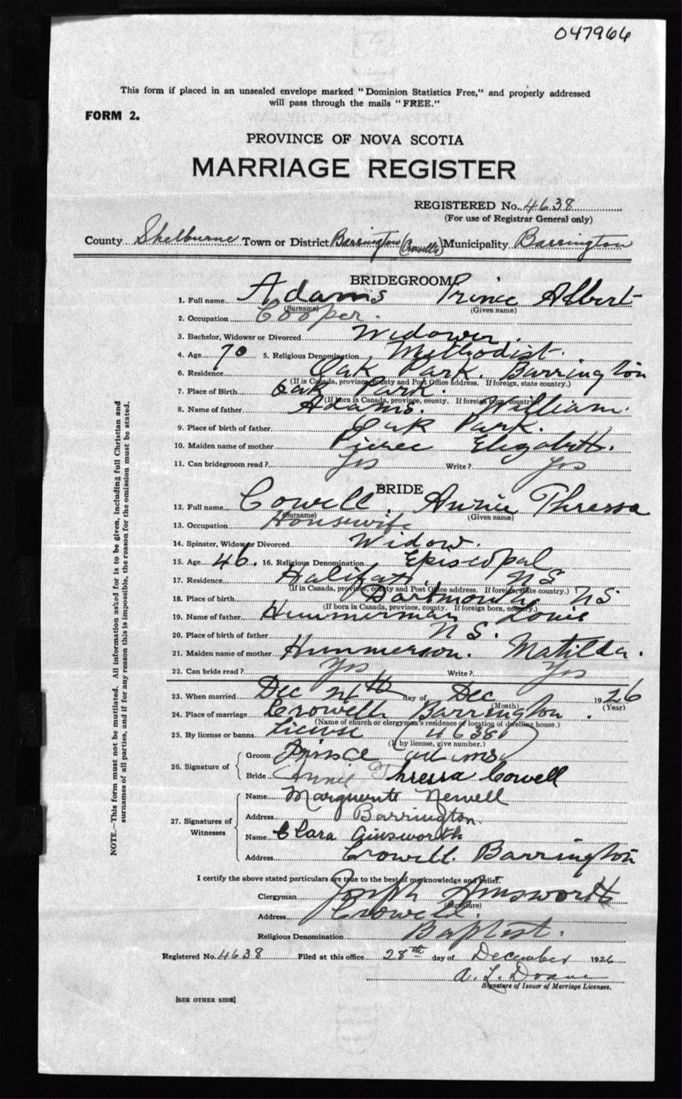 Registration: Year: 1926 number: 47966