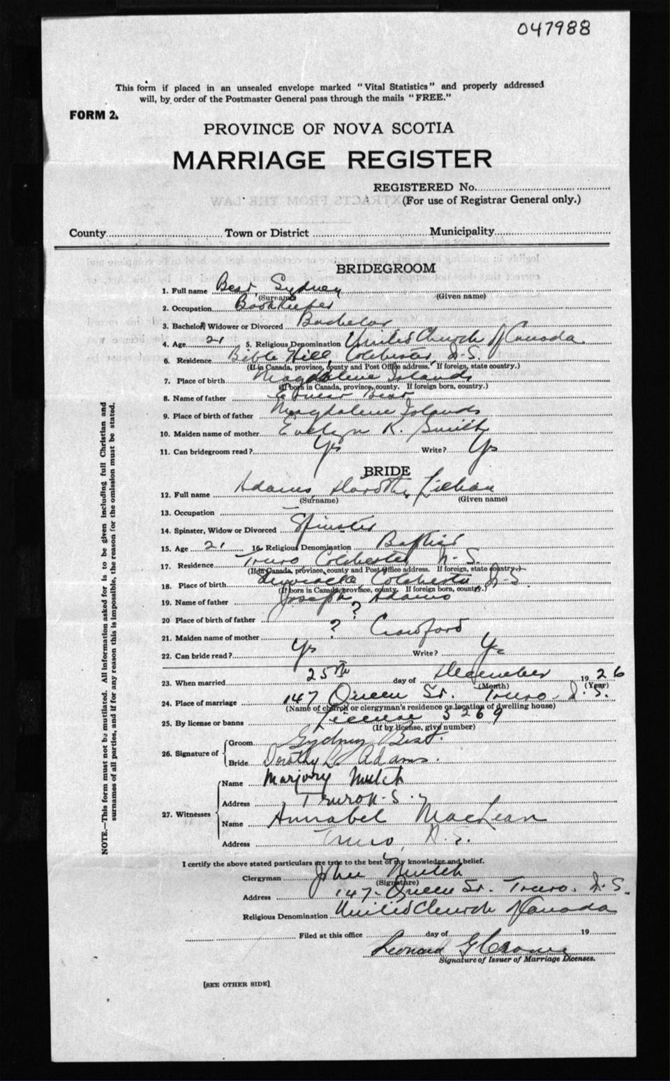Nova Scotia Archives — https://archives.novascotia.ca/vital-statistics/marriage/?ID=191146