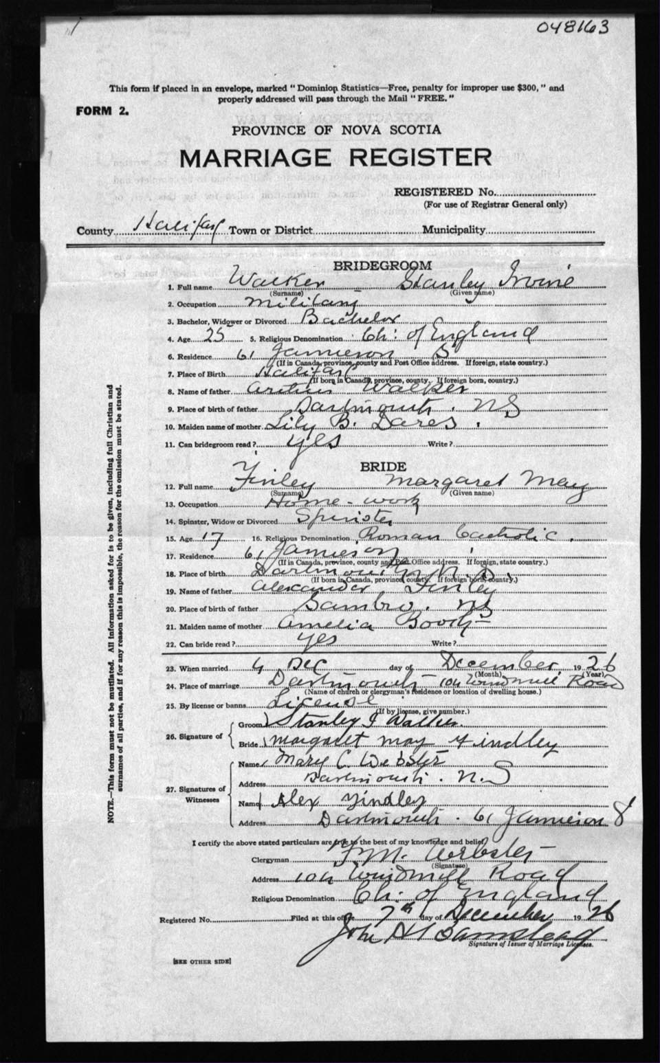 Registration: Year: 1926 number: 48163