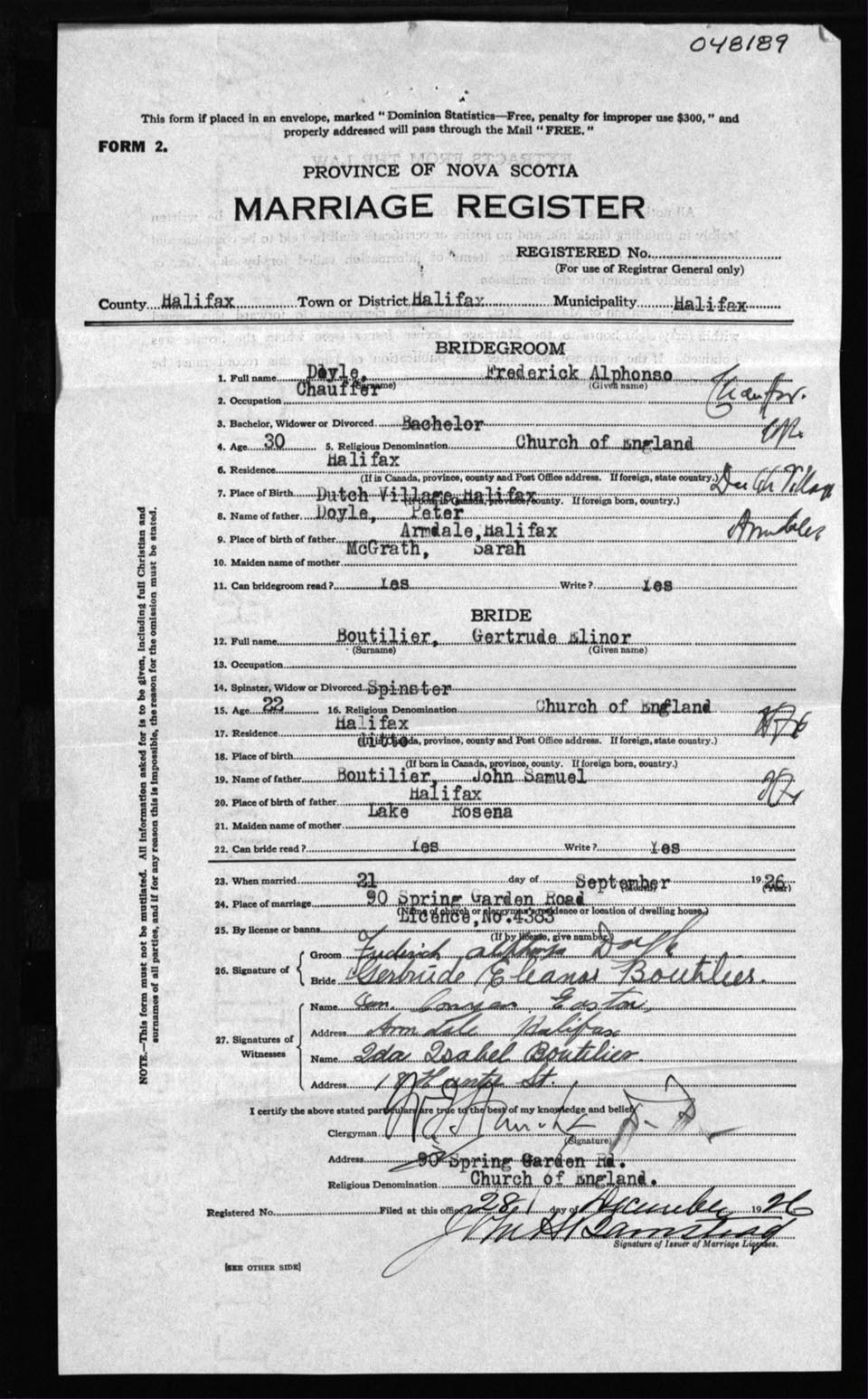 Registration: Year: 1926 number: 48189