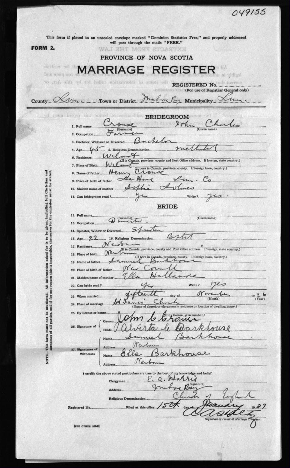 Registration: Year: 1926 number: 49155